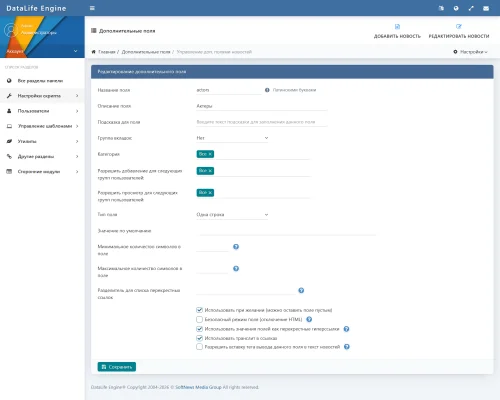 - Версия DataLife Engine: 19.1