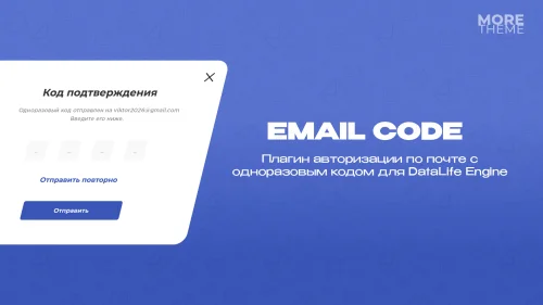 Плагин добавляет функционал авторизации по e-mail через одноразовый код: пользователь вводит свой e-mail, получает код и мгновенно входит на сайт. Если e-mail уже зарегистрирован, вход осуществляется по паролю, для DataLife Engine